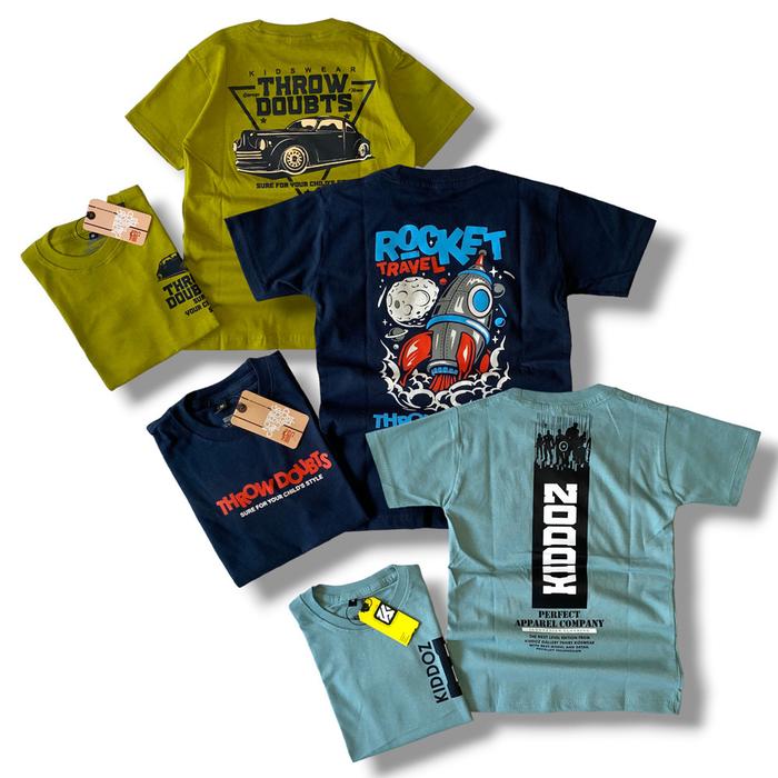 PAKET BAJU KAOS ANAK LAKI-LAKI DISTRO 3PCS KIDDOZ GALLERY KATUN USIA 4-12TH - MOTIF, PAKAIAN FASHION - HIJAUSM-NAVYRC-SA