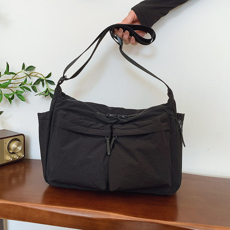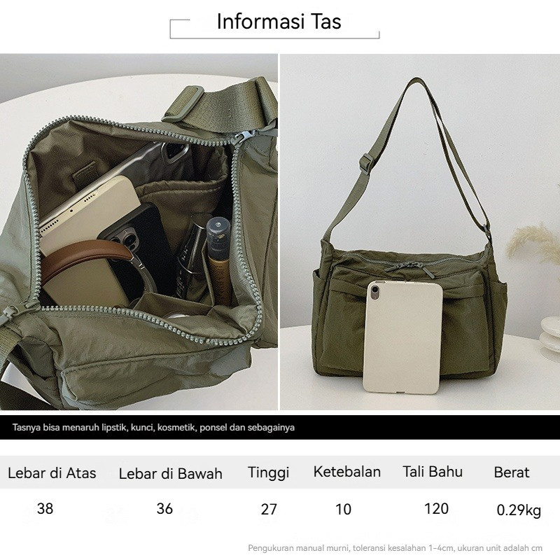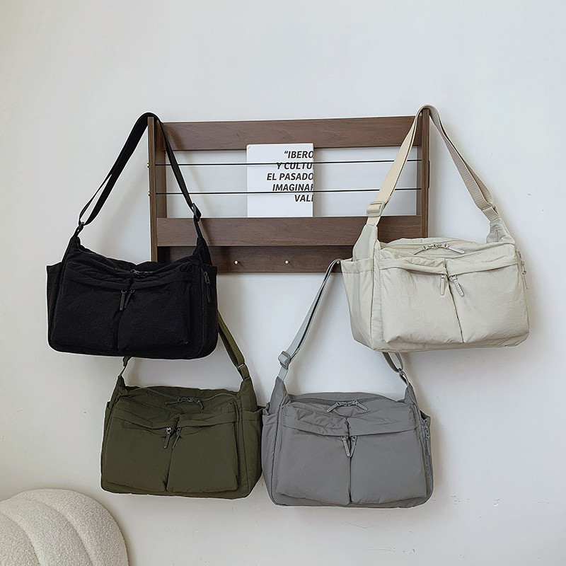 Tas Messenger Nylon Unisex Kasual - Tahan Air Banyak Saku Muat Laptop Gaya Streetwear