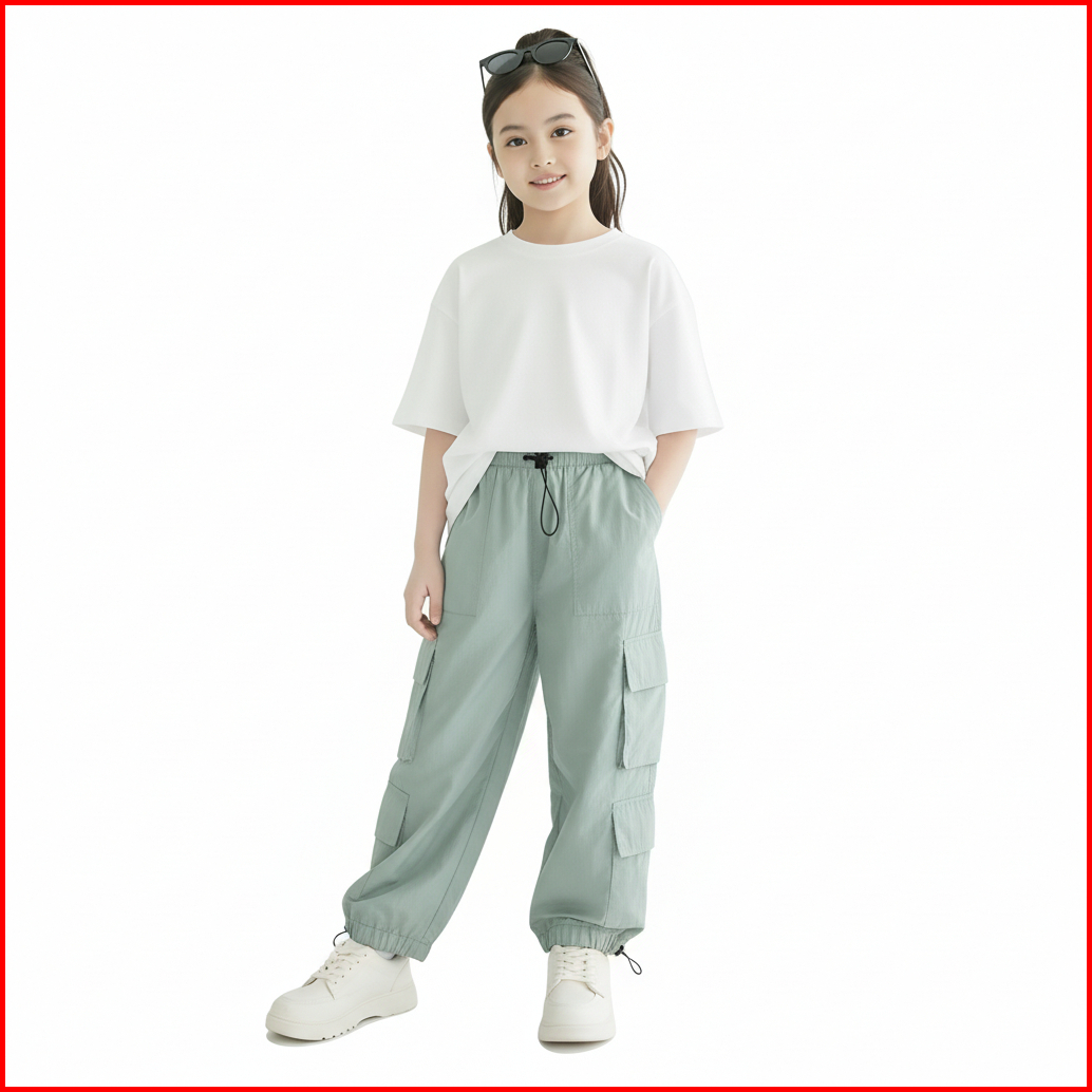 Shibakids Celana Cargo Sage Anak Perempuan Laki Laki 3-14 Tahun Dusky Crinkle Jogger Tali Serut