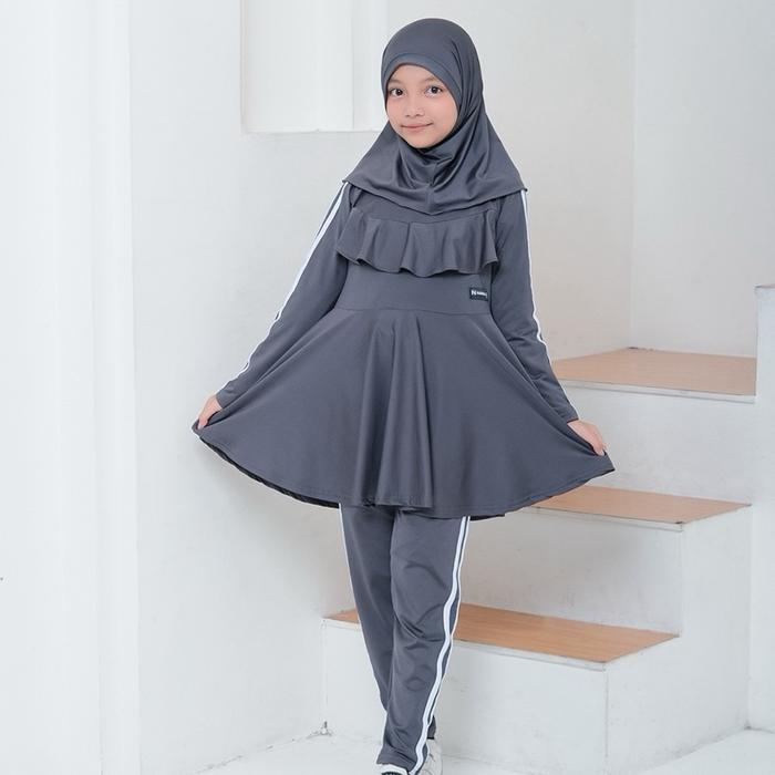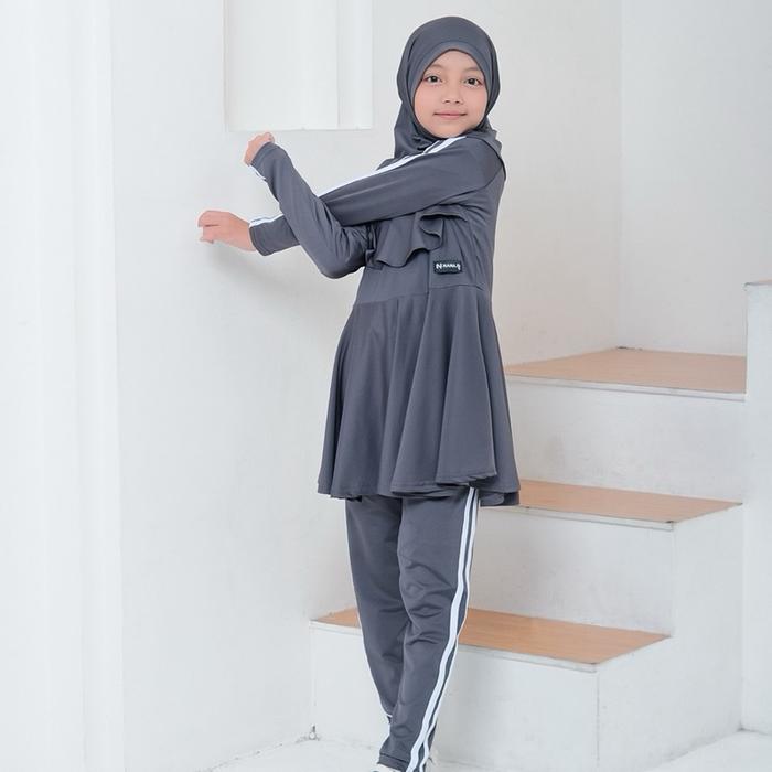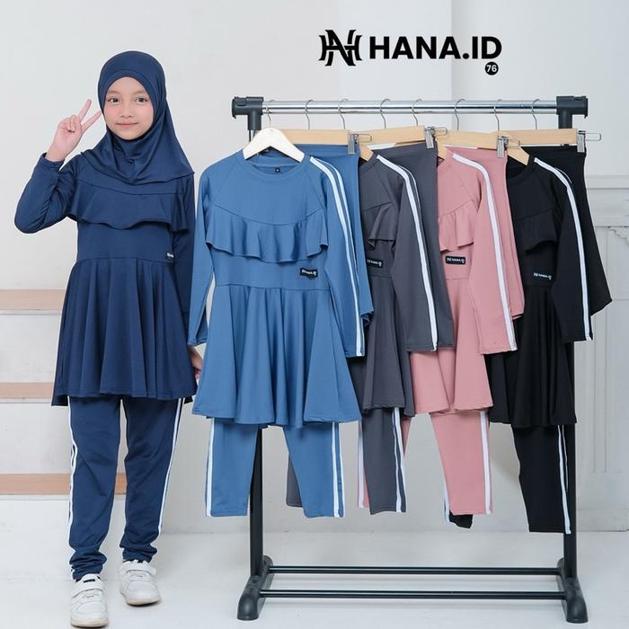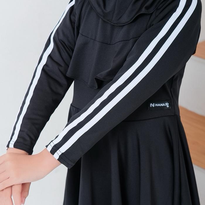 Setelan Olahraga Anak Hijab Hana | Baju Olahraga | Oneset Sport Sporty Wanita Muslim - Hitam, S 6-7 Tahun