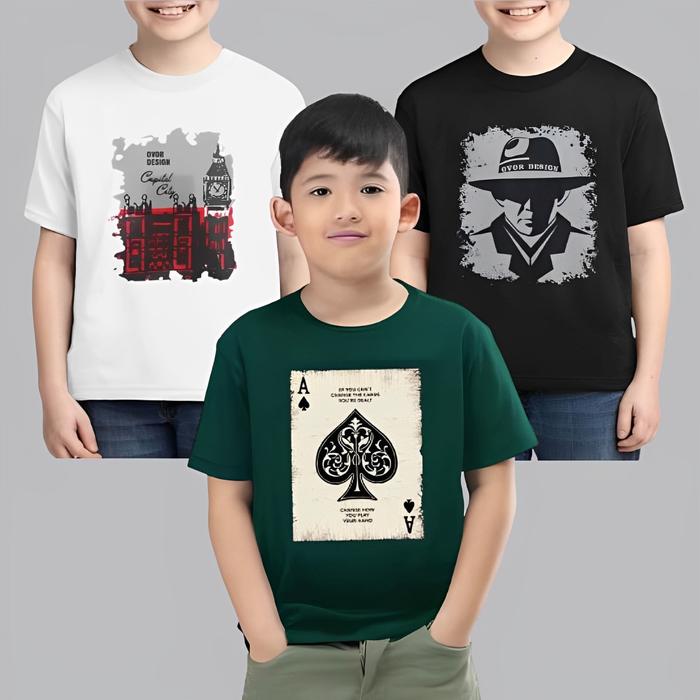 KAOS ANAK 3PCS KAOS ANAK LAKI LAKI KAOS JUNIOR DISTRO LENGAN PENDEK BAHAN KATUN USIA 10-15 TAHUN - JR1-3PCS, L (10-12TAH