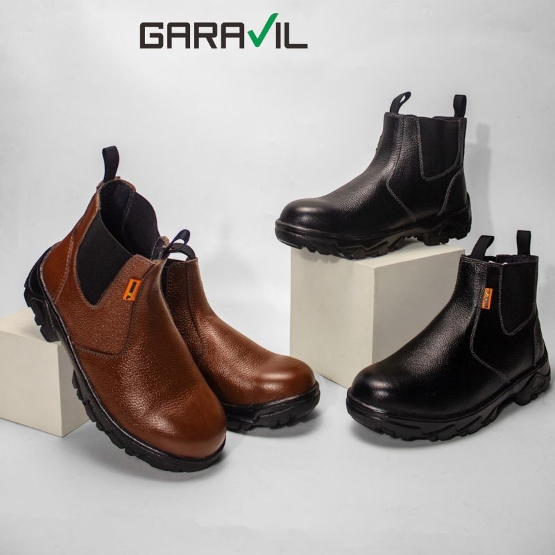 Garavil - Sepatu Safety Boots Slip On Karet Pria Dan Wanita Ujung Besi 106