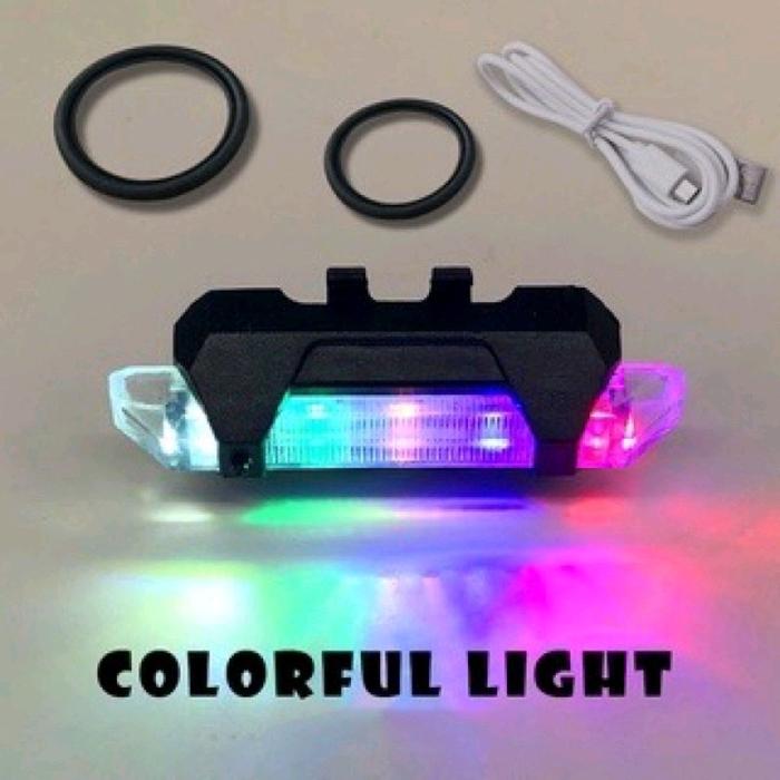 Lampu Sepeda Nyala Kedip 4 Mode + Usb Charger Warna Warni Anti Air Outdoor - Merah