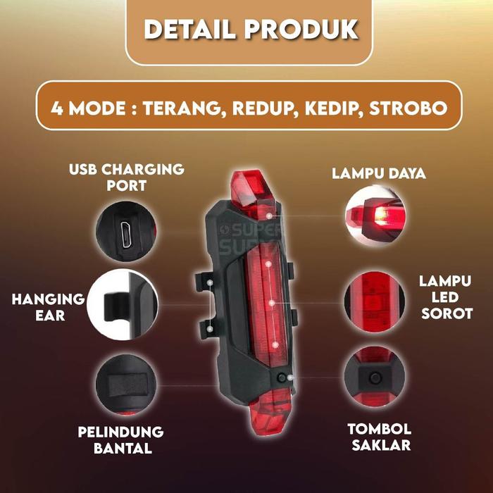 Lampu Sepeda Belakang Led 4 Mode Cahaya Usb Charger Anti Air Bicycle Tail Light Rechargeable Outdoor - Putih