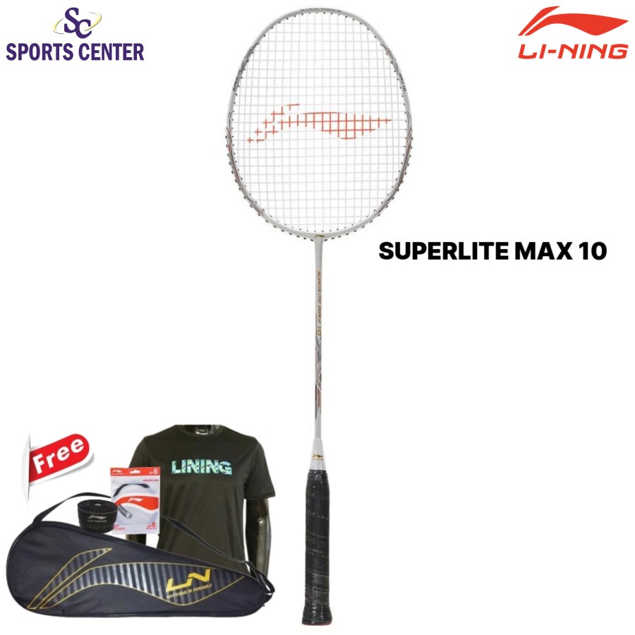 New Full Set Raket Badminton Lining Superlite Max 10 White / Gold