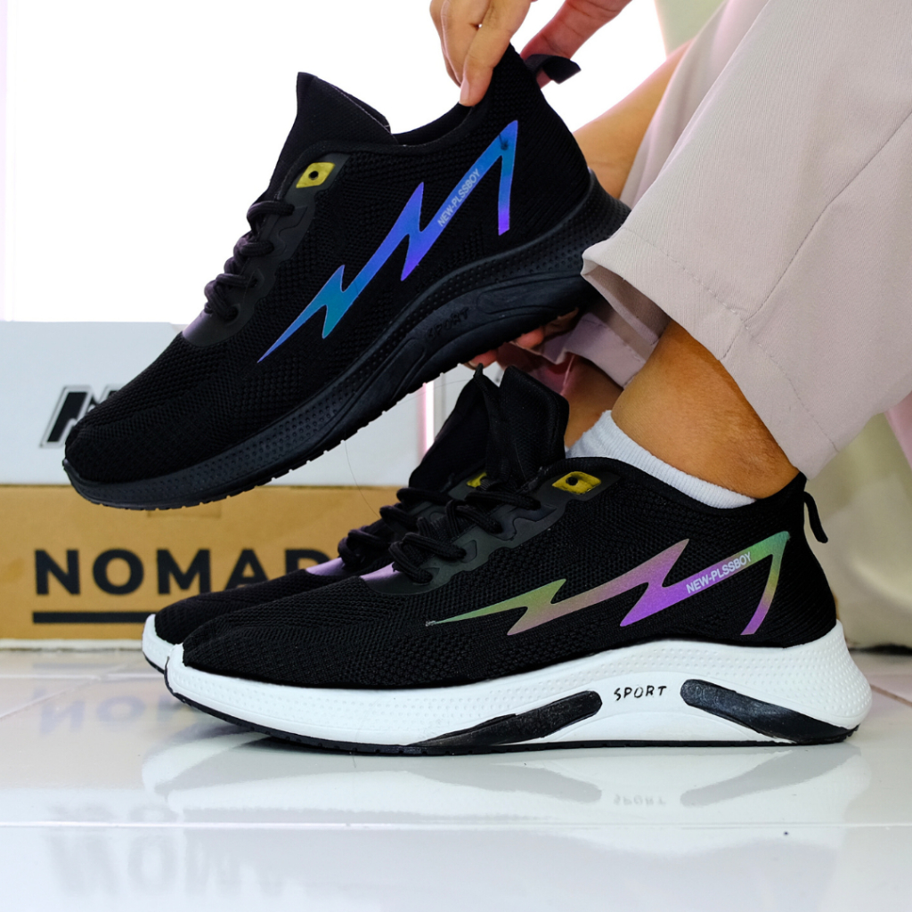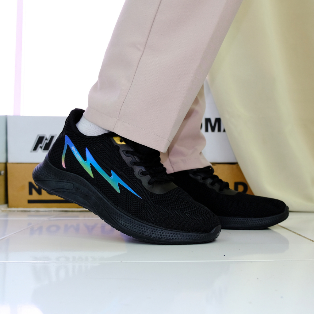 Nomadlab Petir S50 Sepatu Sneakers Fashion Menyala Kasual Hitam Karet Shoes Sport