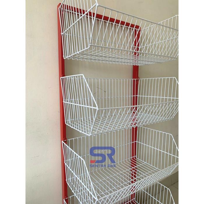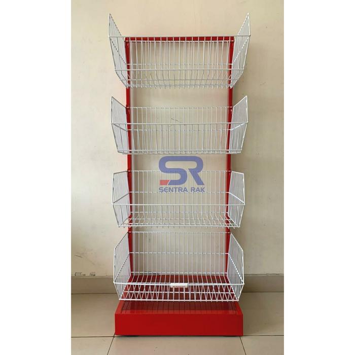 Rak Snack - Rak Roti Minimarket 4 Susun - Merah - Link Ekspedisi Luar