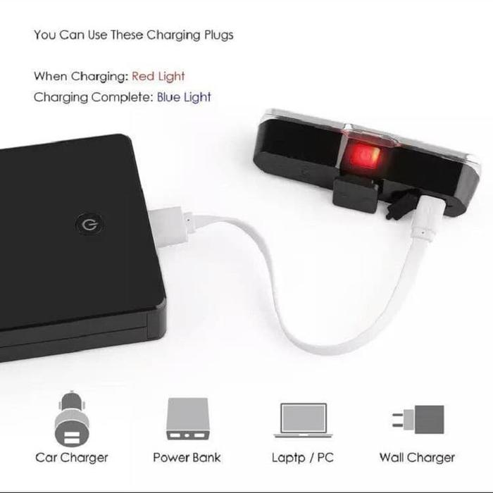 Lampu Belakang Sepeda Usb 2 Warna Merah Biru