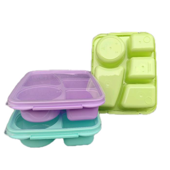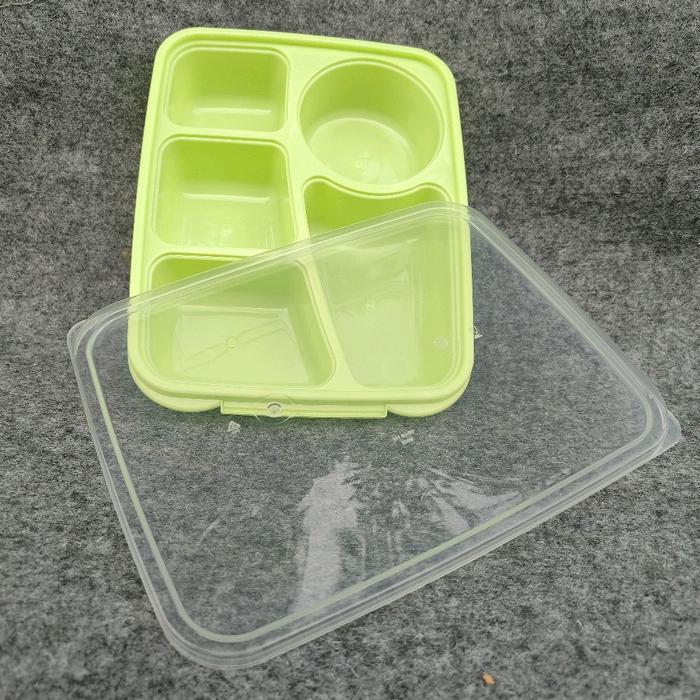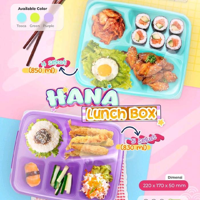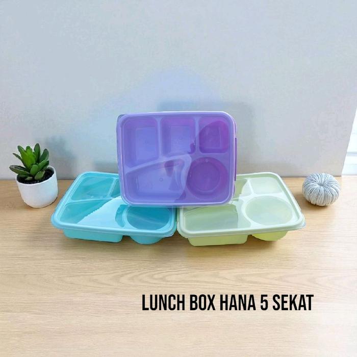 Tempat Makan Lunch Box 5 Sekat Hana Bygy Kotak Bekel 830 Ml Kitchenware Plastik Souvenir - Hana Hijau