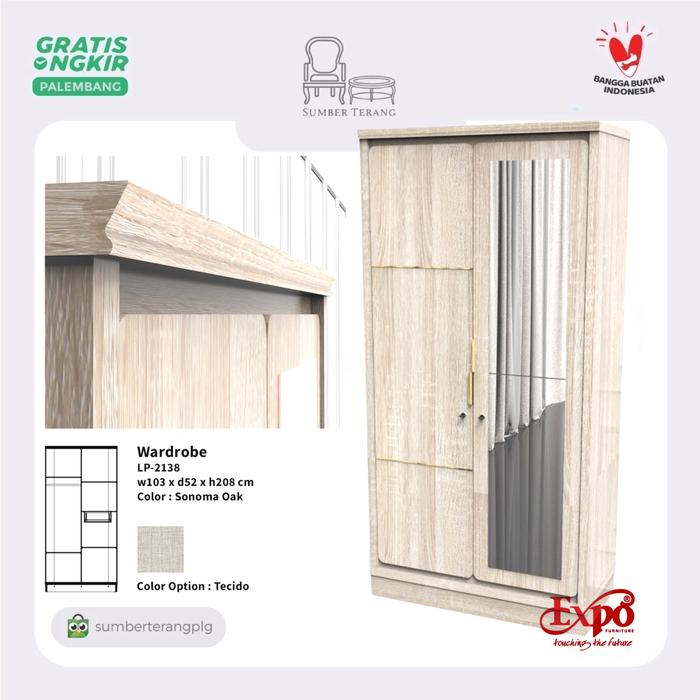 Lemari Pakaian 2 Pintu Kaca Cermin Lemari Baju Gamis Expo Lp 2138