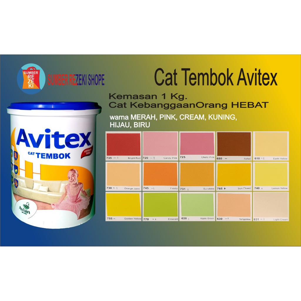 Cat Tembok Merah,Pink,Kuning,Cream,Hijau Plafon Gypsum Avitex Interior 1kg Avian Brands