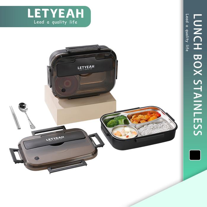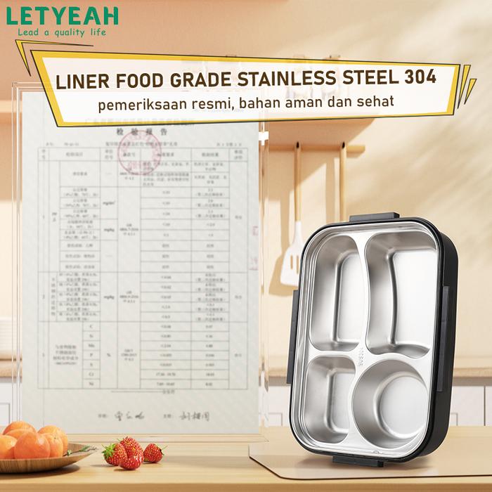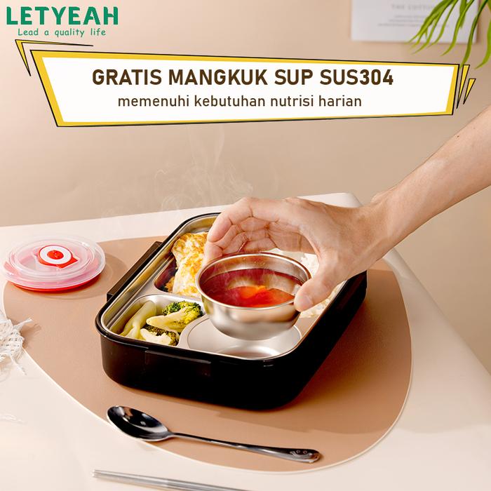 【Original Exclusive】Sus304 Letyeah 4 Gird Lunch Box 304 Stainless Steel Kotak Bekal Makan 1300Ml Gratis Mangkuk Sup -