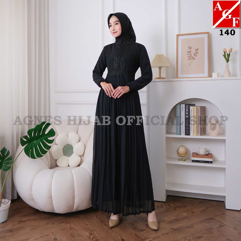 Agnes Hijab - Fujhy Dress Gamis Putih Lebaran 2026 Terbaru Baju Muslim Wanita Dewasa Mewah Abaya Hitam Pesta Kondangan H