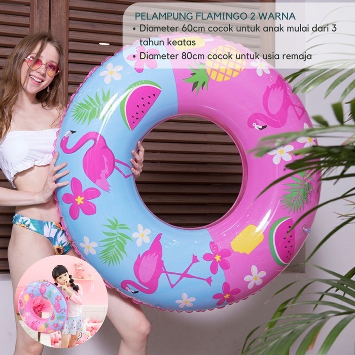 Xin Yue Pelampung Renang Anak Motif Flamingo Swimming Ring Dua Warna - Ban Pelampung Renang Bulat