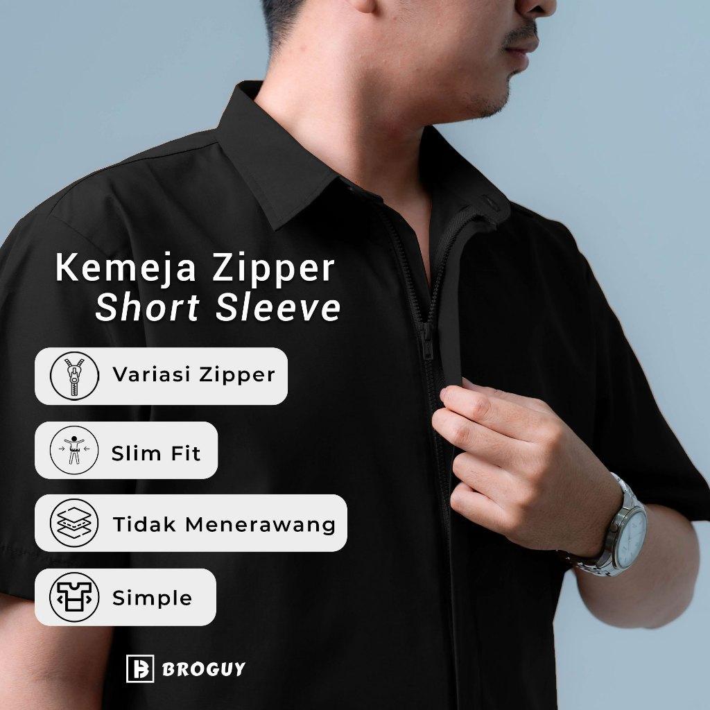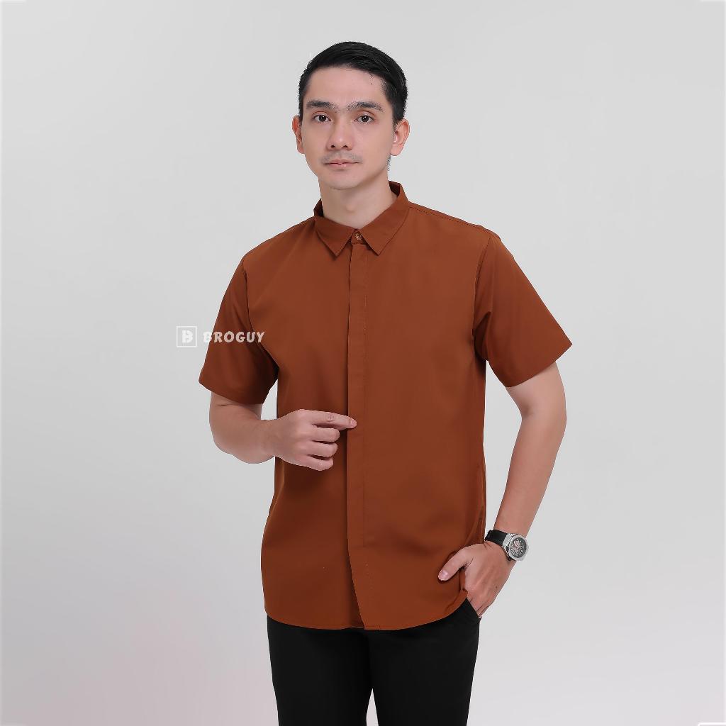 Broguy Kemeja Zipper Pria Simple Lengan Pendek - Caramel