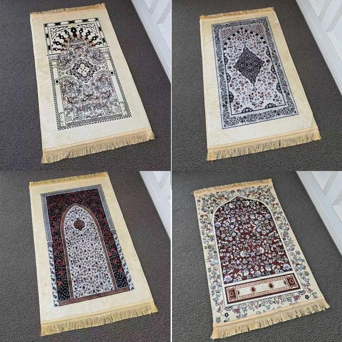 Sajadah Sholat Turki Tebal Dan Empuk Ukuran Besar 110x70cm Embos Lembut Motif Muslim - Krem