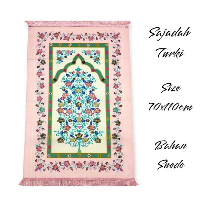 Sajadah Turki Bahan Suede Scuba Premium Motif Bunga Fhasion Muslim Ukuran Lengkap - Pink 35x35cm