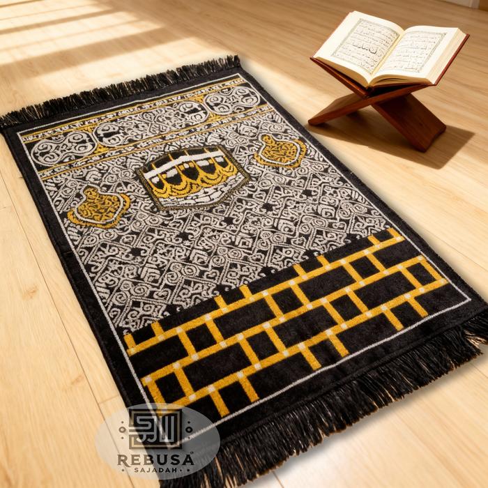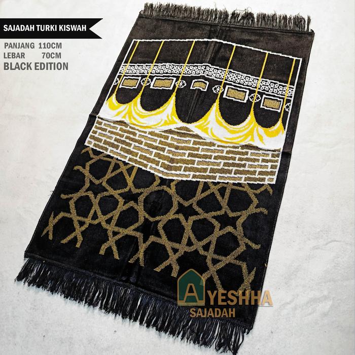 Sajadah Turki Kiswah Khusus Hitam Lembut Ukuran 110x70cm Oleh-oleh Haji Umroh - Kakbah Besar BESAR(70x110)