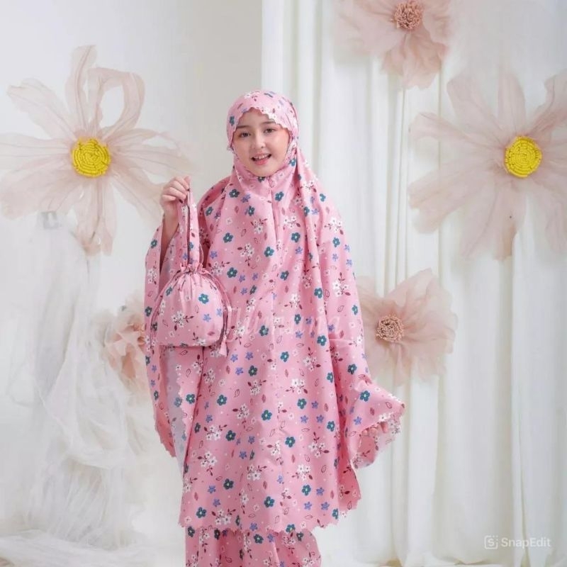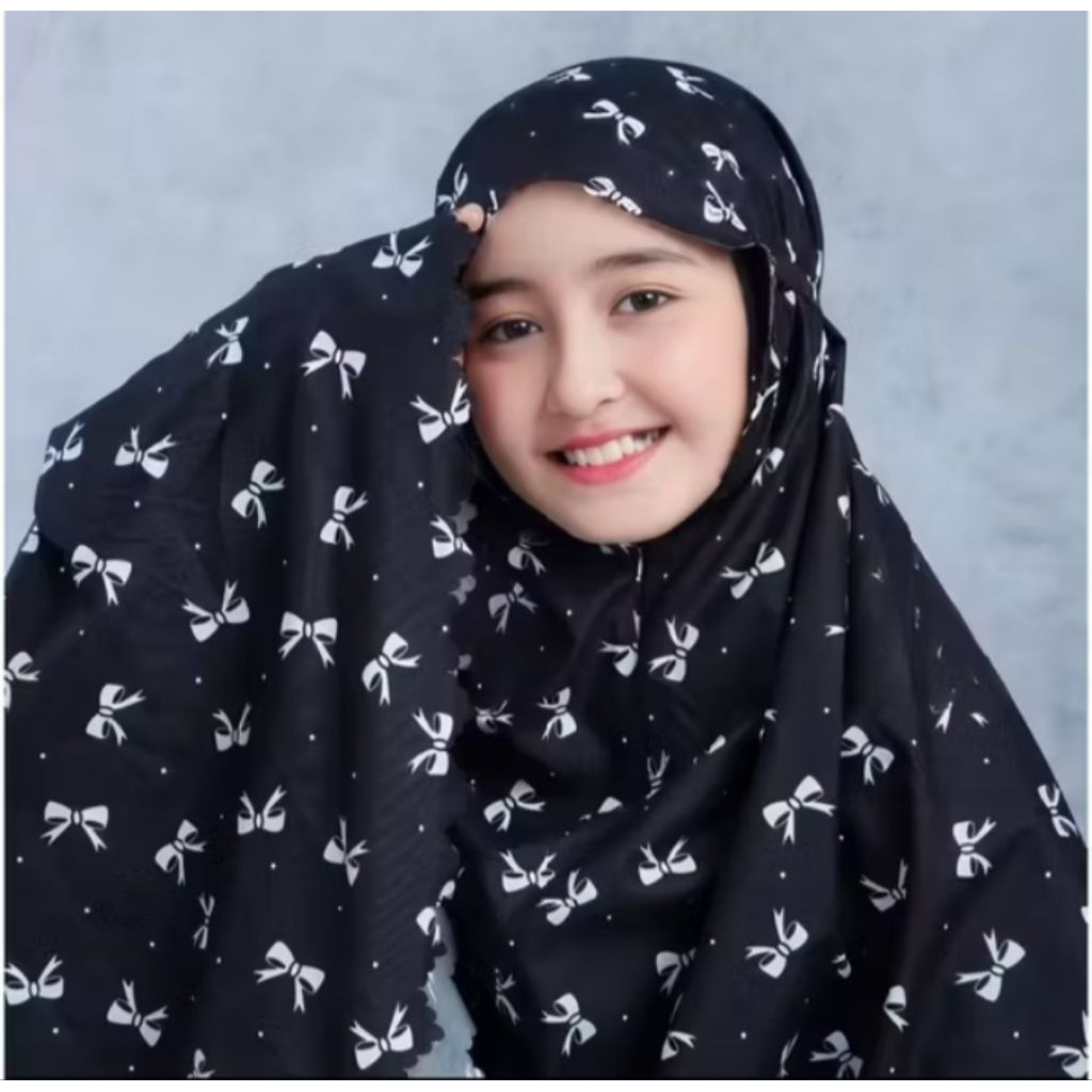 Mukena anak sd terbaru travel mini pouch 2in1 mukena anak katun print 6-13 tahun