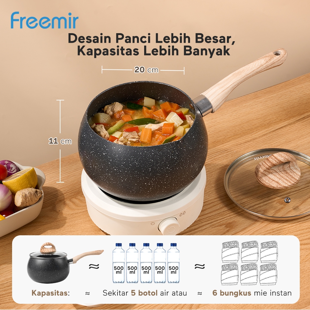 freemir Panci Susu Anti Lengket Panci Mie Panci Serbaguna Panci Gemoy Aesthetic Double Bottom Pemanasan Merata