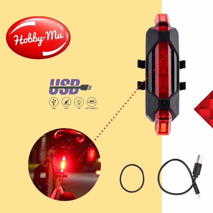Lampu Belakang Sepeda - Lampu Ekor Peringatan Usb Charger - Dus - Putih