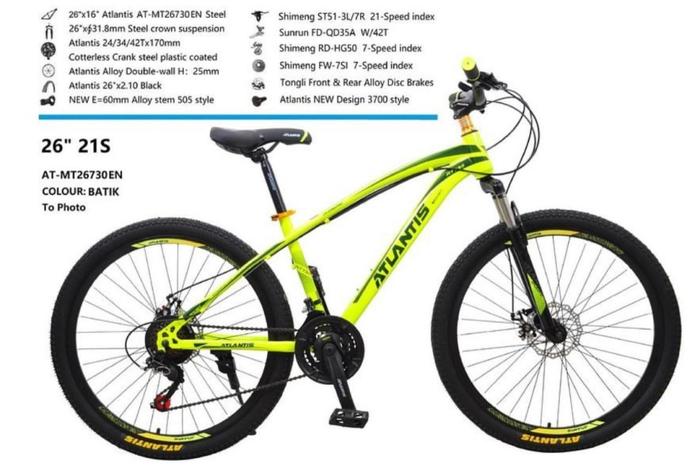 Sepeda Gunung Mtb Atlantis 26Inch 21S Discbrake Garansi Sni Kredit - Yellow Green