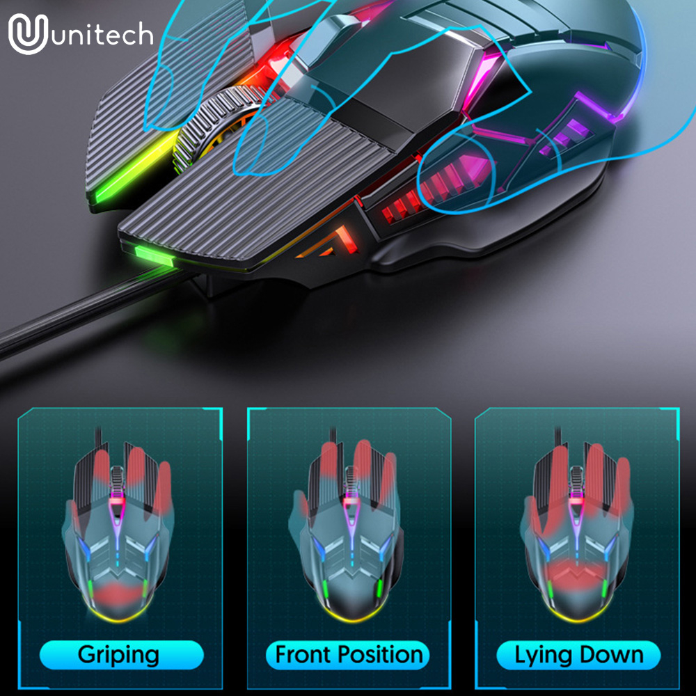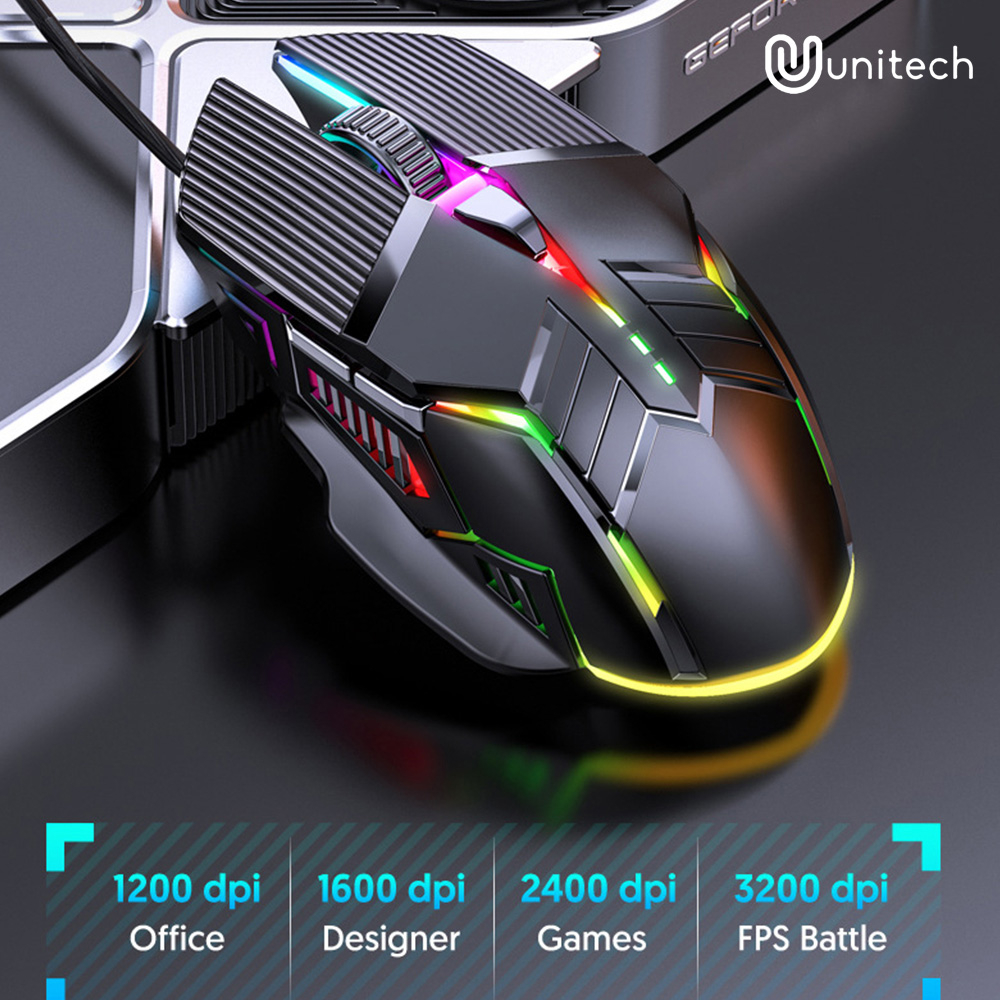 Mouse Gaming Kabel Optical Unitech Colorful Backlight Silent Click Mode 3200 DPI S800
