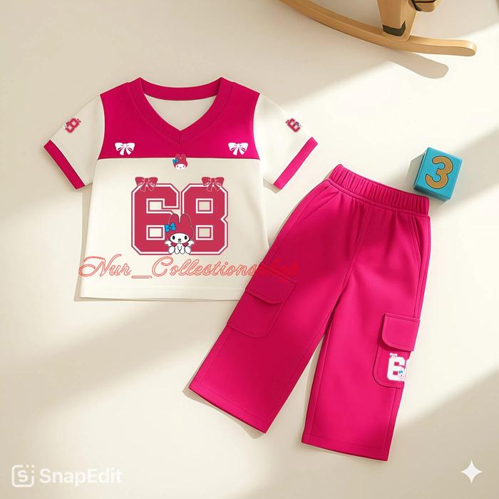 Setelan Baju Jersey Kuromi Pita Anak Perempuan Usia 3-12 Tahun Warian 5Warna Terbaru - Hitam, 3-4 Tahun