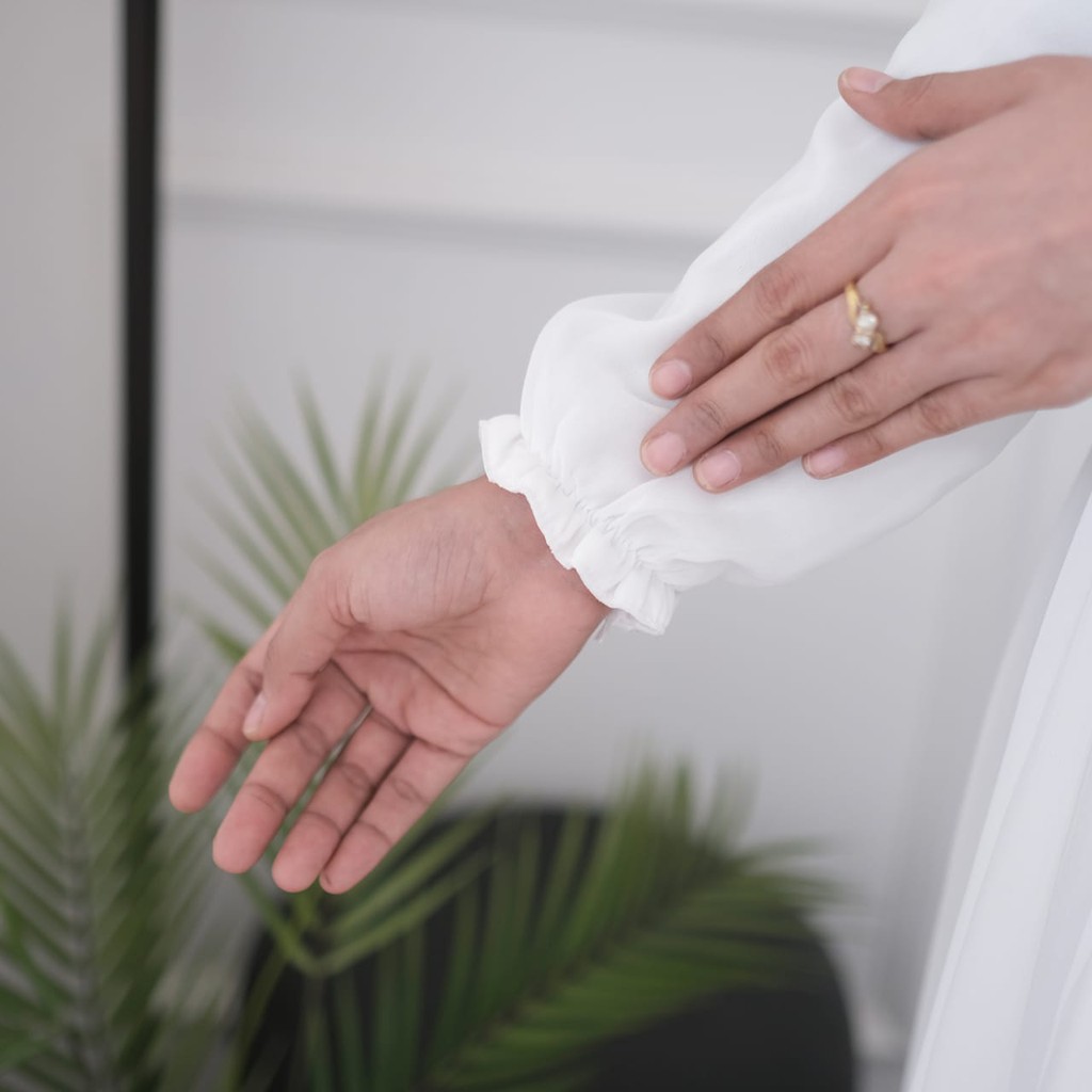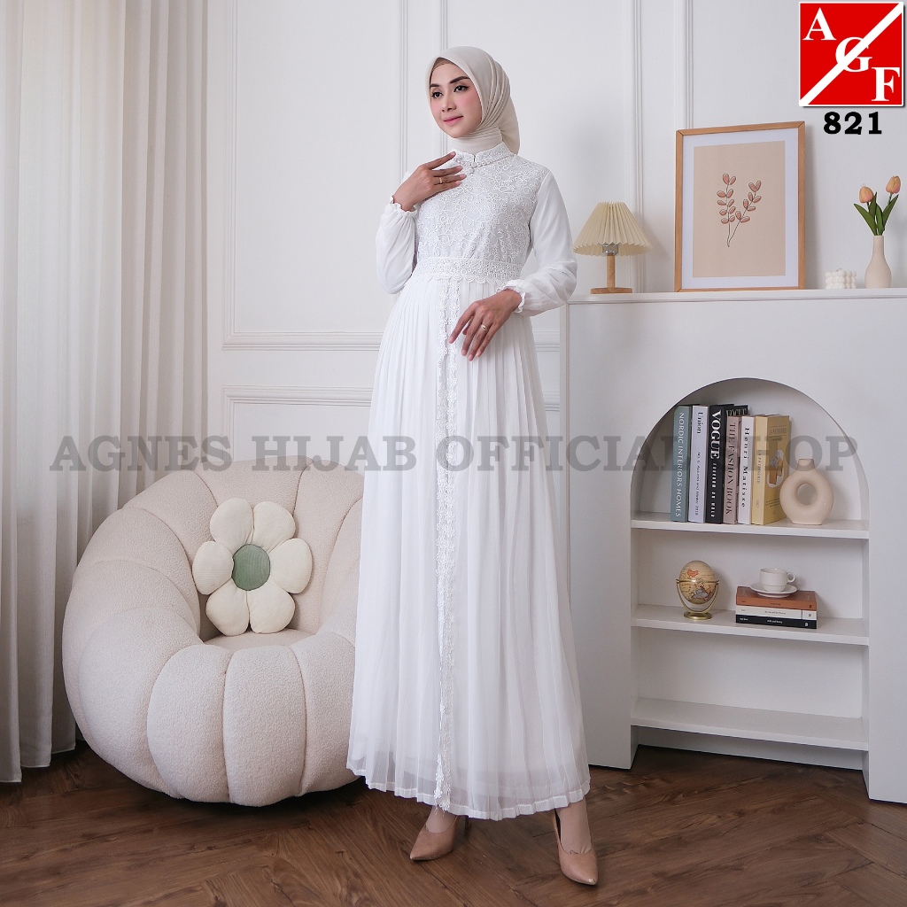 Agnes Hijab - Khairany Dress Gamis Putih Lebaran 2026 Terbaru Plisket Baju Muslim Dewasa Elegan Gaun Pesta Kondangan Haj