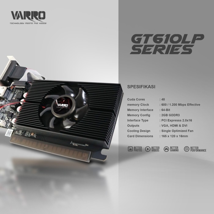 VGA GT610 2GB DDR3 aphics Card with 1 Year Warranty