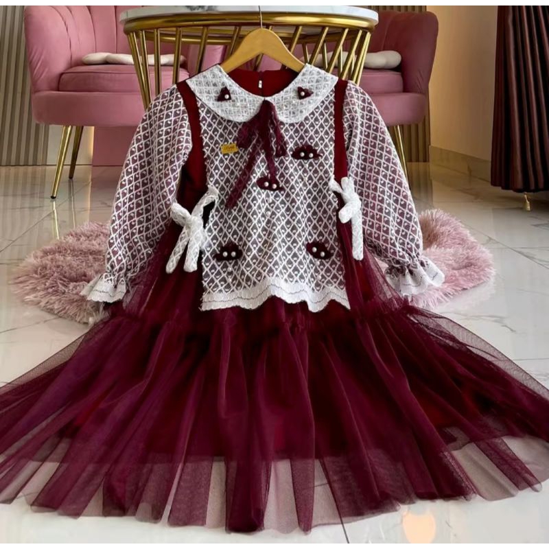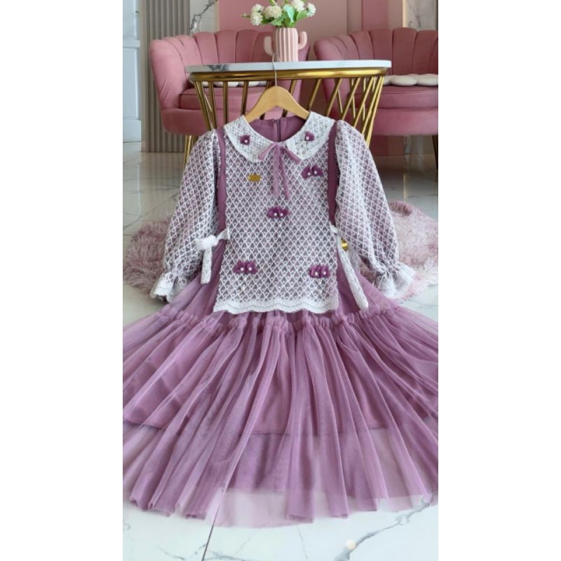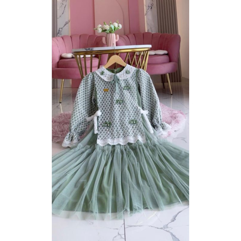 Gamis anak perempuan Bahan Brokat mix tille jelita dress model rompi 3-15 tahun Terkini
