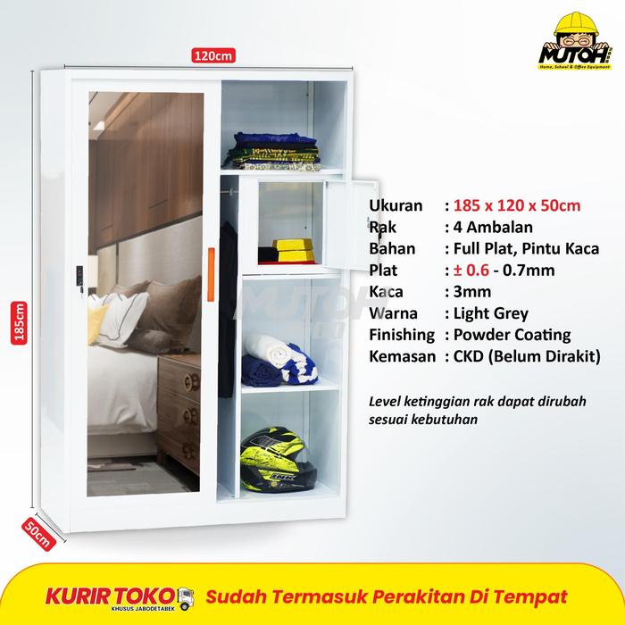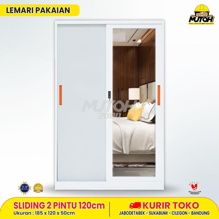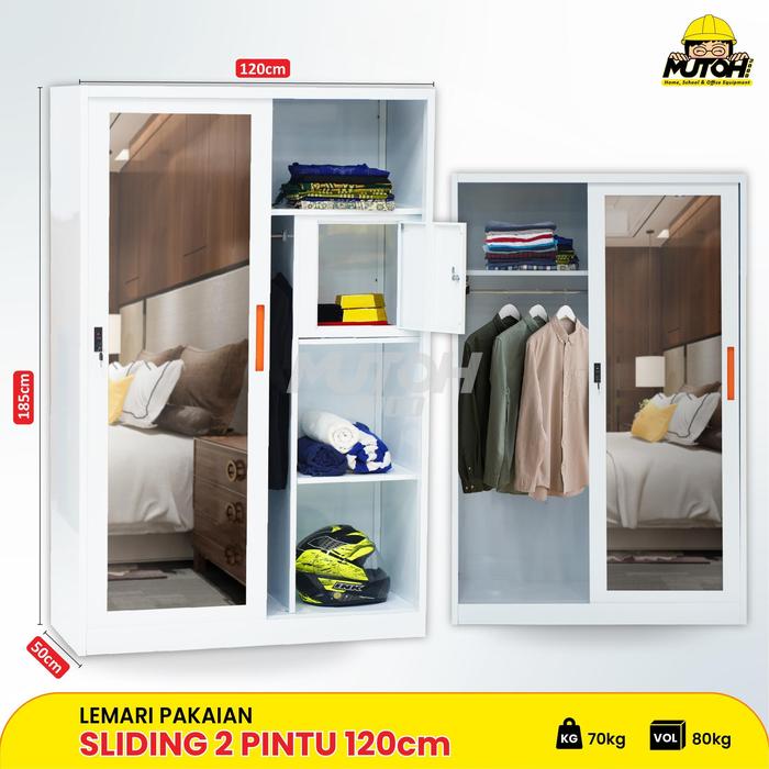 Lemari Pakaian Besi 2 Pintu Cermin Sliding V-120 Cm | Mutoh2000 - Tidak Dirakit