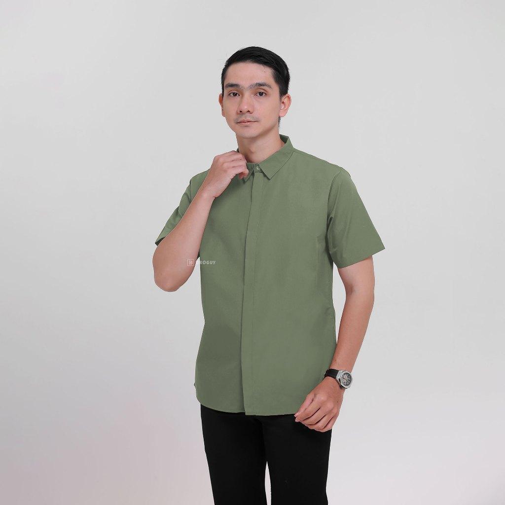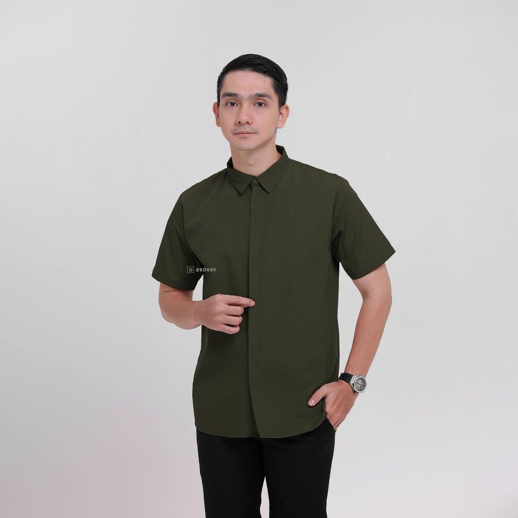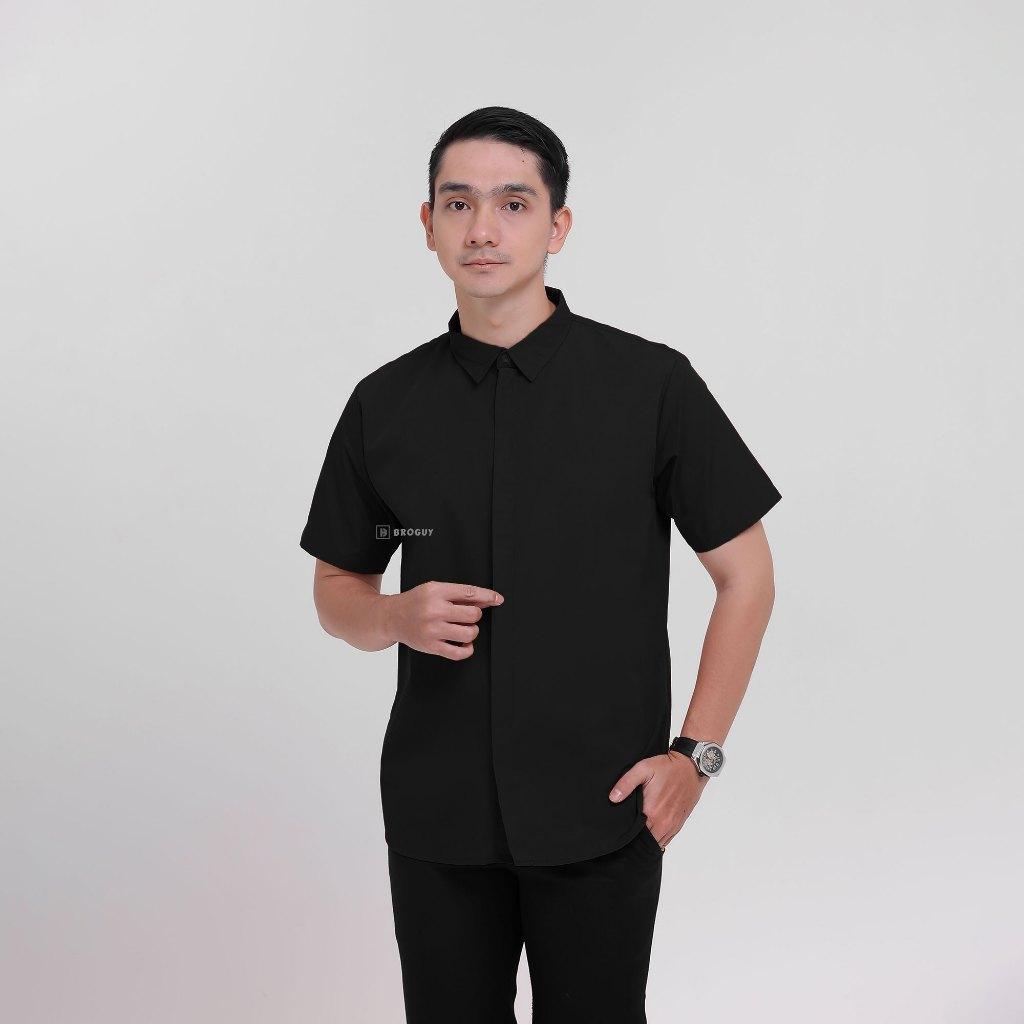 Broguy Kemeja Zipper Pria Simple Lengan Pendek - Black