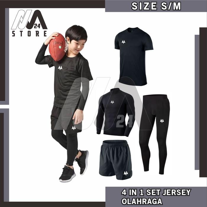 4 In 1 Kids Jersey + Baselayer + Celana Pendek + Lagging Anak - Anak Outdoor Sport - S
