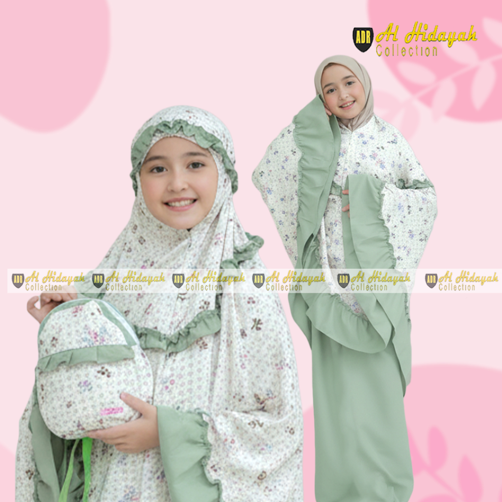 Mukena Anak Tas Ransel Resleting Dagu Rayon Premium Motif Mukenah 2 in 1 TK SD Tanggung 3 4 5 6 7 8 9 10 11 12 13 14 15 Tahun