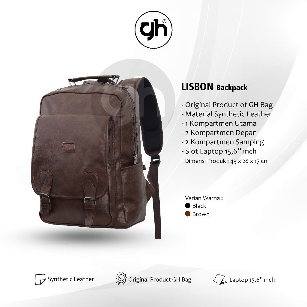Gh-Bag Tas Ransel Kulit Lisbon Pria Backpack Terbaru Kulit Sintetis 14 Inch Tas Kerja Tas Seminar