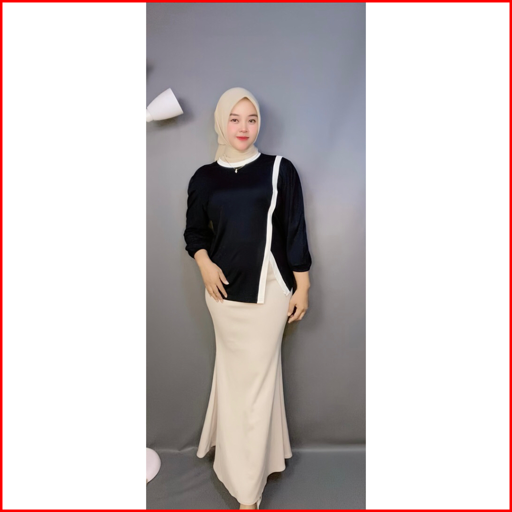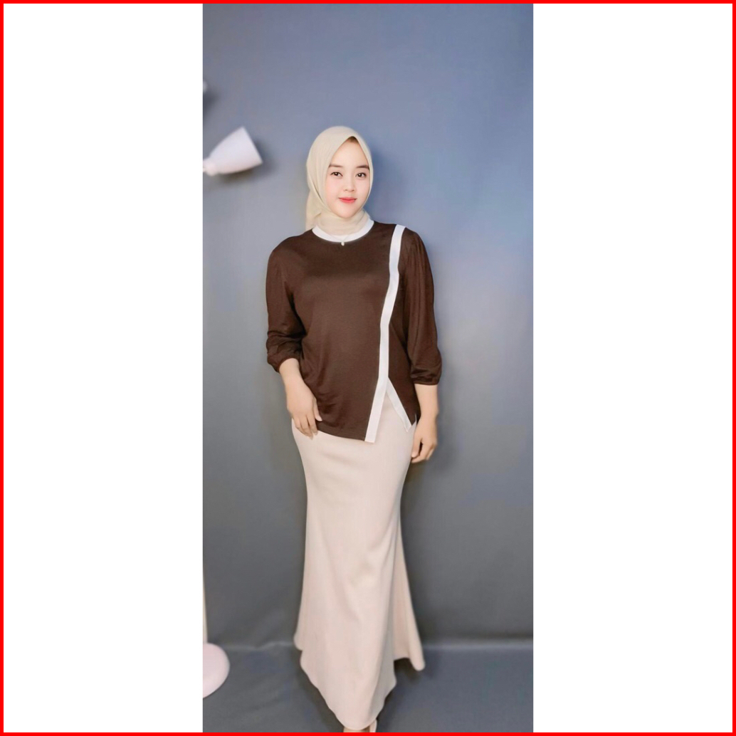 Eliza Blouse Lengan 7 8 Kombinasi Warna Kaos Atasan Wanita Kekinian 1898