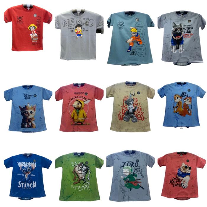 KAOS ANAK 3-10 THN 6 PCS 100 RIBU KAOS CEWEK COWOK UNISEX BAHAN SEMI KATUN 24S MOTIF BAJU - MIX WARNA RANDOM, XS 6 PCS