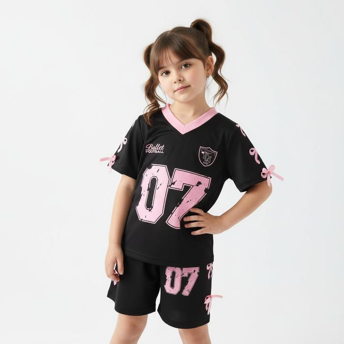 Baju Setelan Anak Model Jersey Chic Sporty Baju Anak Setelan Olahraga 07 Ballet Football Hitam-Pink Pastel Setelan Anak