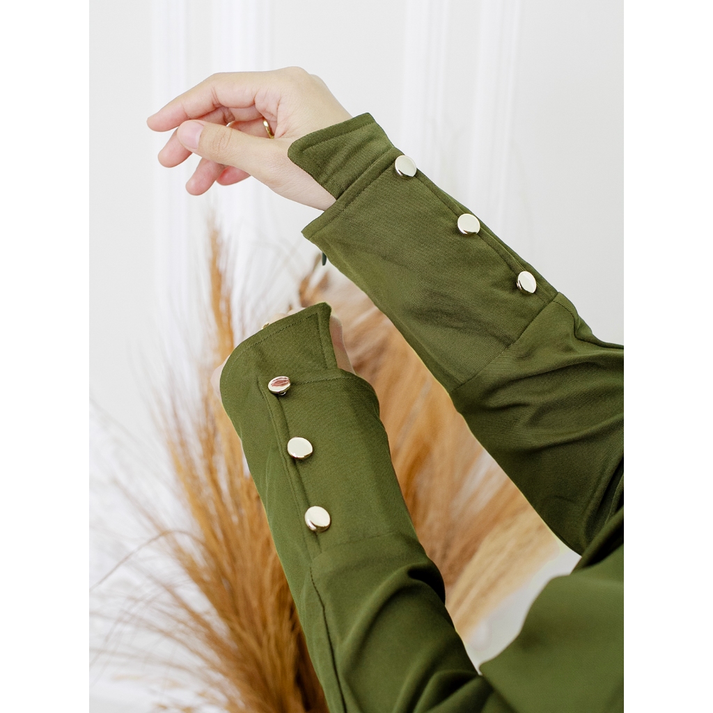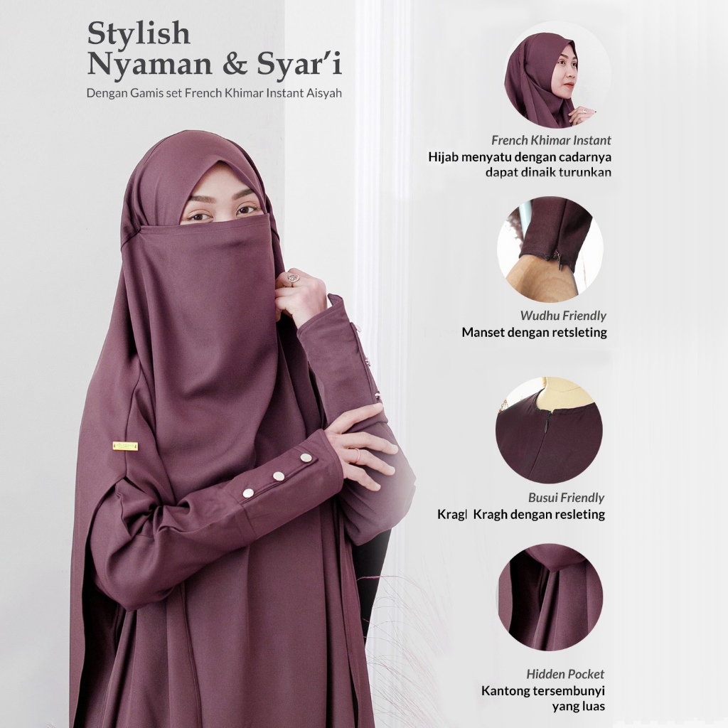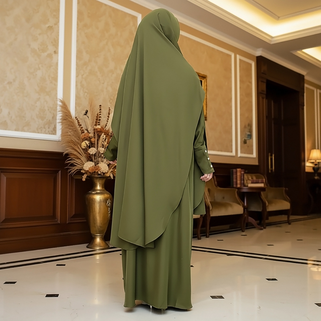 Aqueenah - Abaya Aisyah Set French Khimar Instant Gamis Syari Umroh dan Haji Premium - Army
