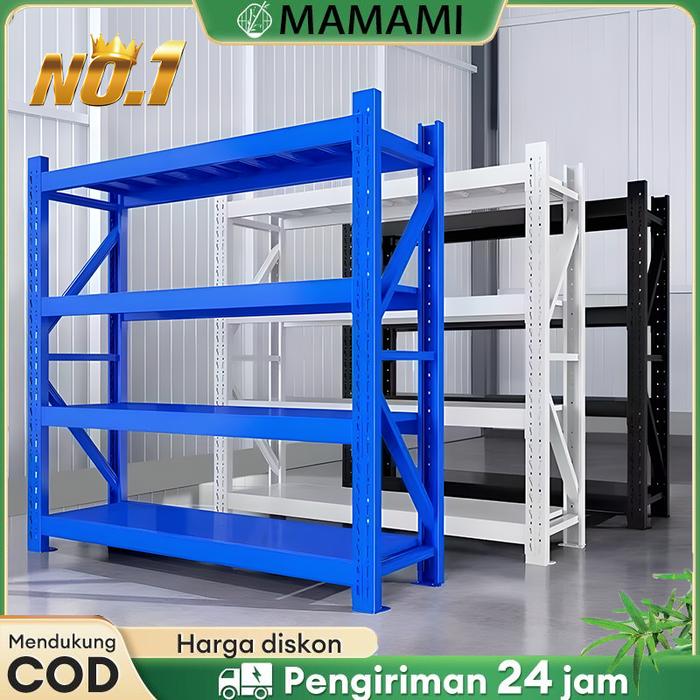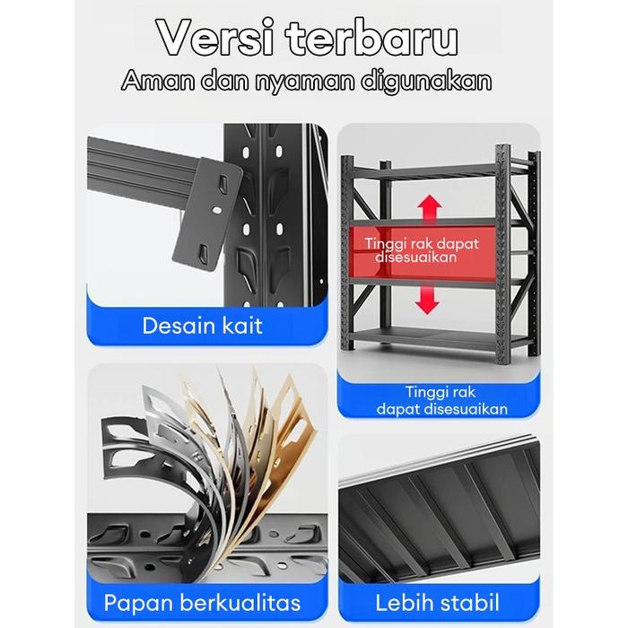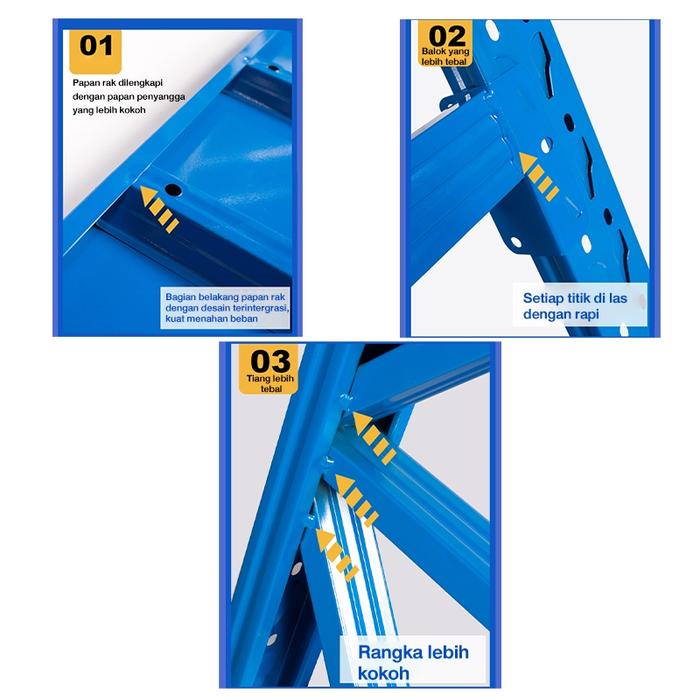 Rak Gudang Besi Heavy Duty Serbaguna 1500Kg 3/4 Susun Biru Kokoh Anti Karat Stabil Untuk Penyimpanan Barang Berat Di Gud