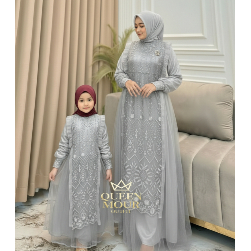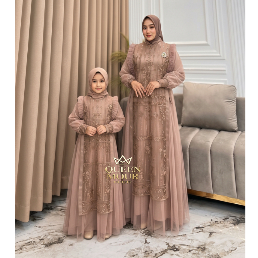 Queen Mour Outfit - sarimbit keluarga 2026 lebaran premium Nikita gamis couple ibu anak Tille Premiu