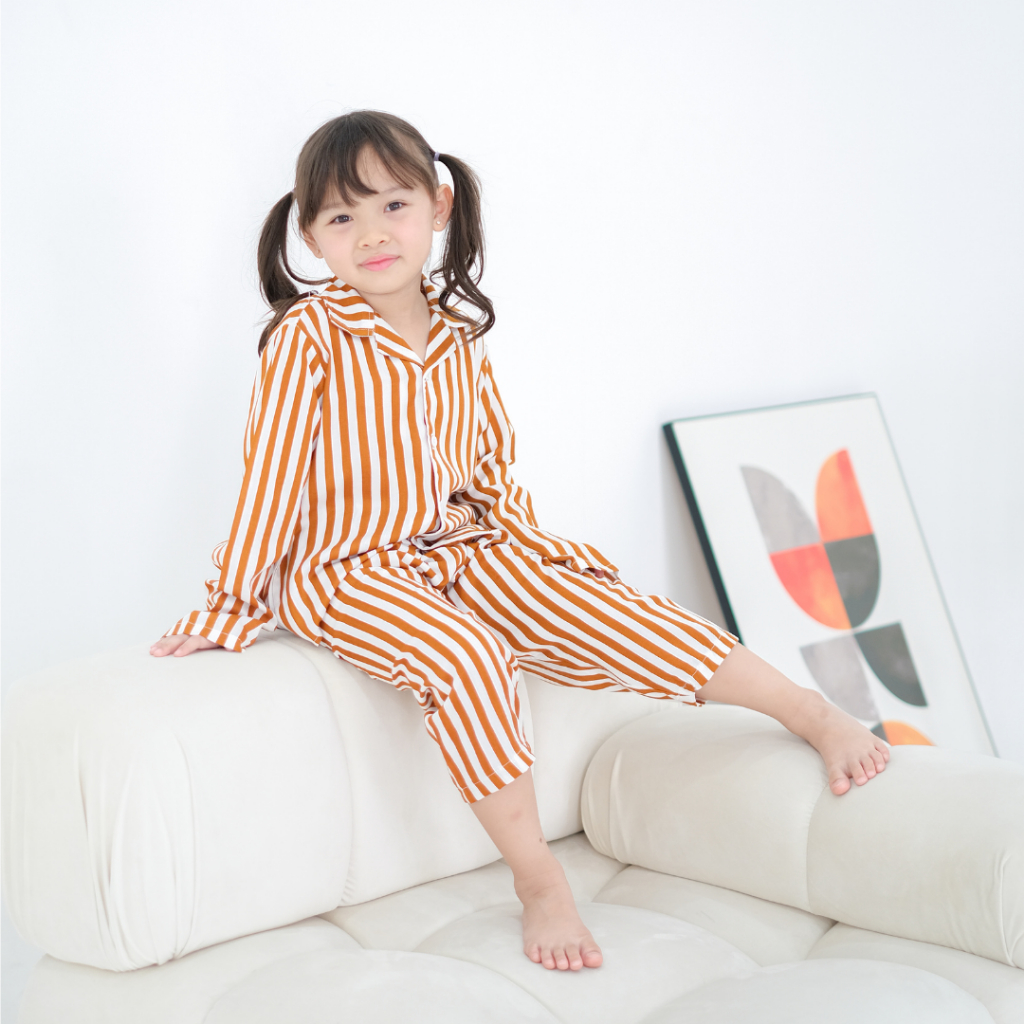 YOBEBEE NOE LONG STRIPE PAJAMAS ANAK USIA 2 3 4 6 8 10 TAHUN ONE SET BAJU TIDUR SALUR ANAK UNISEX