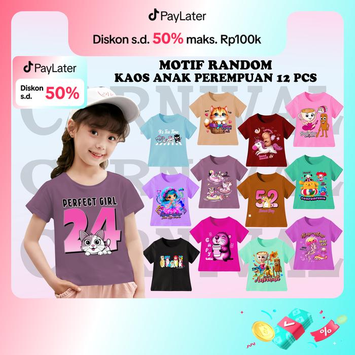 PROMO/PAKET HEMAT ISI ( 12 ) KAOS ANAK CEWEK/PEREMPUAN UMUR 1-12 TAHUN MOTIF ANGKA VIRAL - S USIA 1-2 TAHUN, CEWEK
