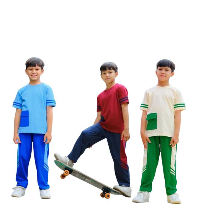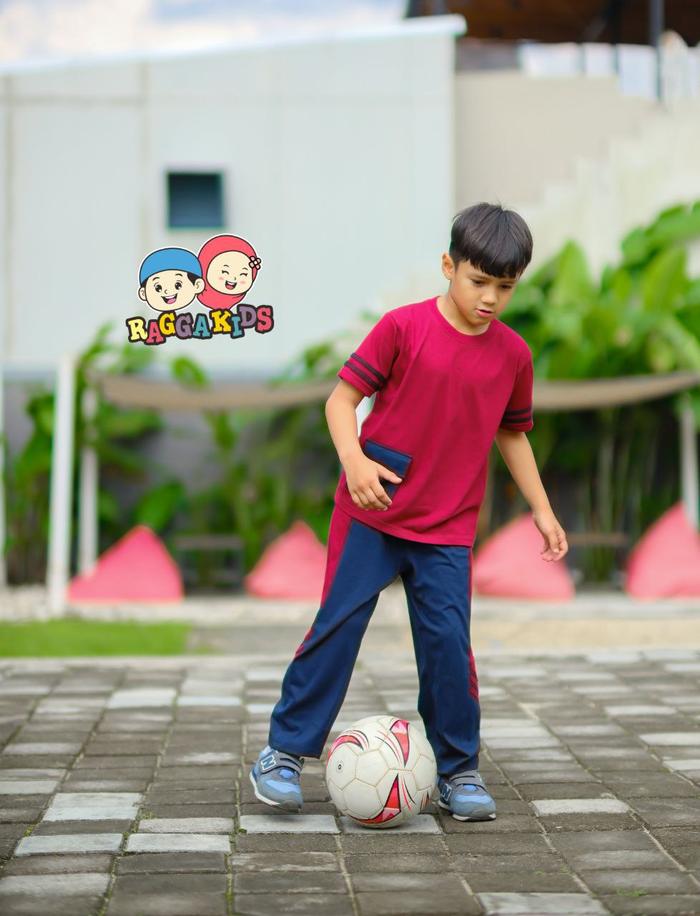 Raggakids Oneset Setelan Baju Olahraga Anak Laki Pakaian Senam Training Set Kaos Lengan Pendek Celana Panjang Usia 3-12