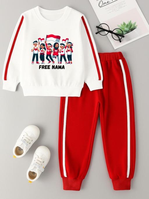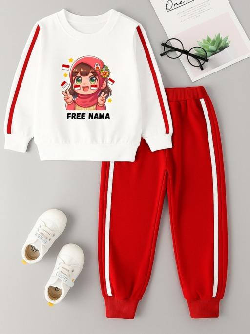 Setelan Baju Anak Kemerdekaan Usia 3-12 Tahun One Set Sweatpants Joger 17 Agustusan Fashion Perempuan Gratis Custom Nama
