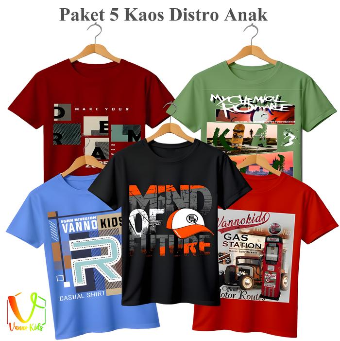 PAKET ISI 5 KAOS DISTRO ANAK COWOK CEWEK KATUN COMBED 24S USIA 3-12 TAHUN DENGAN SABLON DTF FASHION - PAKET 5 KAOS A, M
