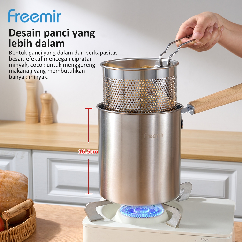 freemir 4 in 1 Multi Kedalaman 20 cm Dengan tutup Deep Fryer Panci Stainless Steel Saringan Capitan Klip Makanan