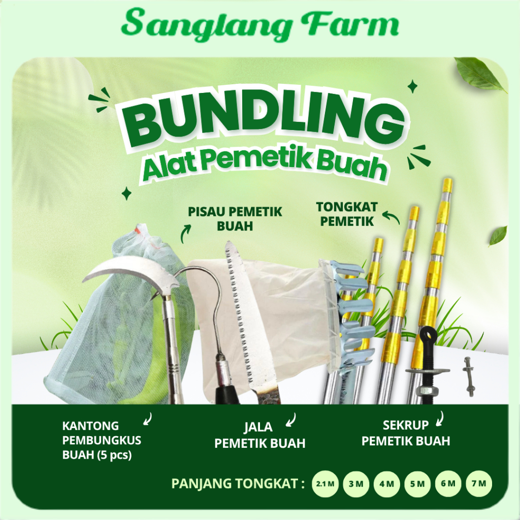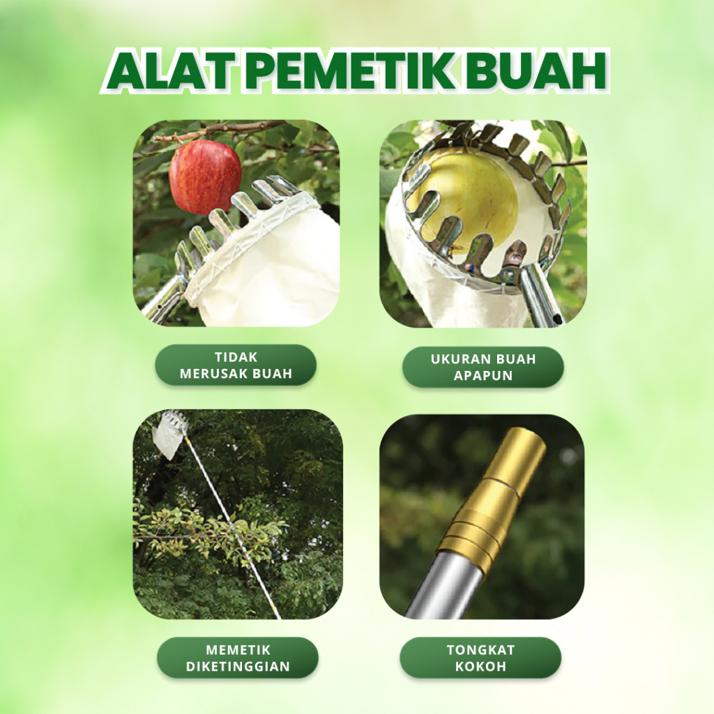 Set Alat Tongkat Galah Pemetik Buah Dari Pohon Multifungsi 2.1M / 3M / 4M / 5M / 6M / 7M