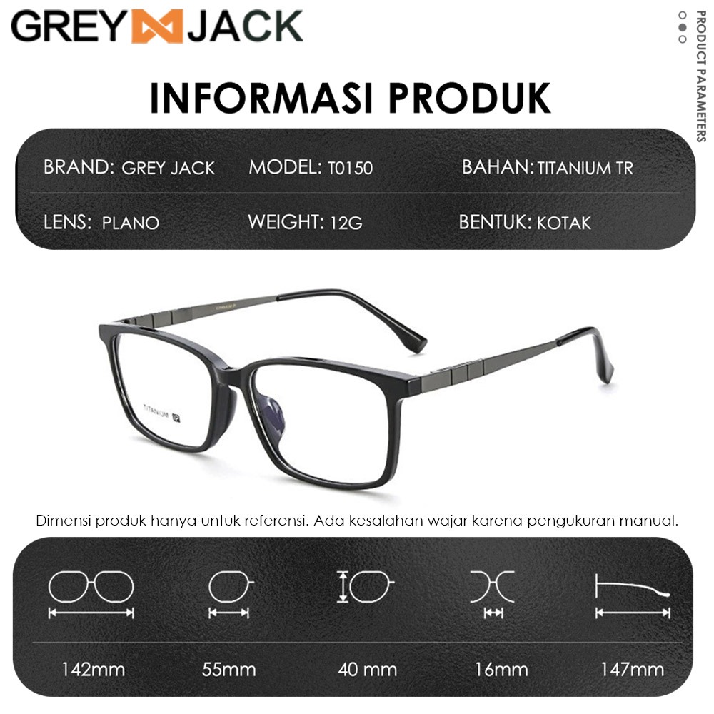 Grey Jack Frame Kacamata Style Kotak Titanium Ringan Tr Bisa Minus Antiradiasi Blueray Photocromic Bluecromic Keren 0015